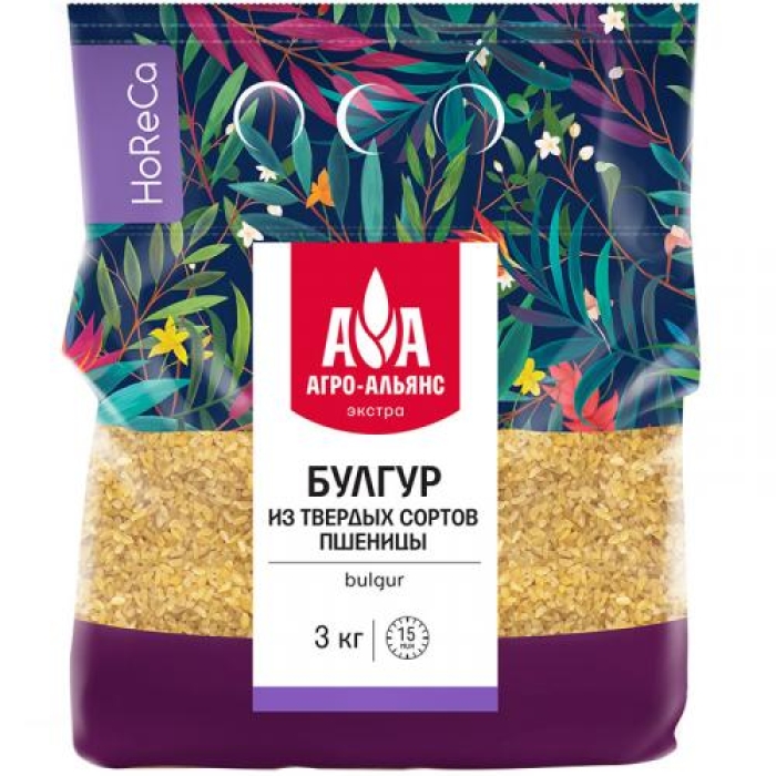 Булгур Агро-Альянс Экстра из твердых сортов пшеницы — это высококачественная крупа, получаемая из пшеницы, собранной в период молочной спелости. Зерна проходят специальную обработку: их обдают кипятком, сушат и очищают от отрубей. Благодаря этому булгур сохраняет свою форму во время приготовления, не разваривается и не склеивается, оставаясь рассыпчатым и аппетитным. Он также сохраняет свои кулинарные свойства и внешний вид при повторном разогревании, что делает его идеальным для использования в различных блюдах.Особенности и преимущества