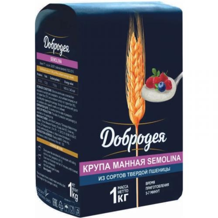 Манная крупа «Добродея» изготавливается из высококачественной твердой пшеницы, что обеспечивает ей богатый состав и питательные свойства. Этот продукт идеально подходит для тех, кто заботится о своем здоровье и фигуре. Каша из манной крупы получается нежной, кремовой и без комочков, что делает ее отличным вариантом для сытного и вкусного завтрака. Она легко усваивается и может быть включена в диетические, спортивные и детские рационы.