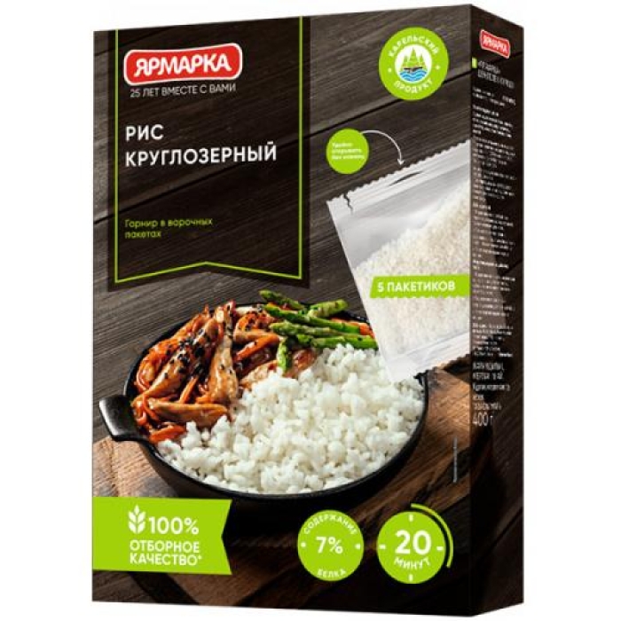 Рис круглозерный Ярмарка в варочных пакетах — это идеальный выбор для приготовления разнообразных блюд, характерных для русской кухни. Продукт отличается высоким качеством и натуральным составом, что делает его отличным источником питательных веществ. В каждом пакете содержится рис, который прошел строгий контроль качества и не содержит генетически модифицированных организмов.Особенности и преимущества