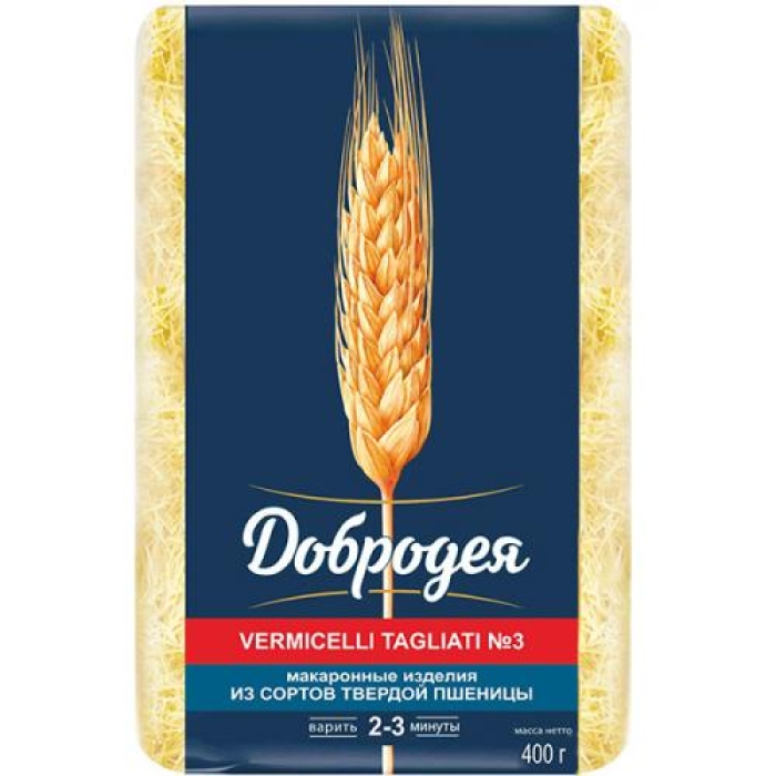 Вермишель Ниточка Vermicelli Tagliati N3 от бренда Добродея — это тонкие и воздушные макаронные изделия, которые идеально подходят для разнообразных блюд. Благодаря своему диаметру в 0,5 мм, они быстро готовятся и отлично впитывают ароматы бульонов и соусов, что делает их незаменимыми в приготовлении супов, гарниров и детского питания.