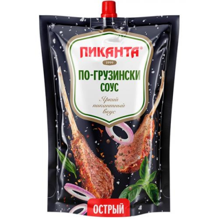 Соус Пиканта По-грузински острый — это яркий представитель традиционной грузинской кухни, который привносит в блюда уникальный кисло-сладкий вкус с легкой остротой и пряным ароматом. Основой соуса служит томатная паста, дополненная тщательно подобранными специями, среди которых выделяются хмели-сунели, кориандр и базилик. Этот соус идеально подходит для мясных блюд, птицы и шашлыка, подчеркивая их вкус и добавляя новые нотки.