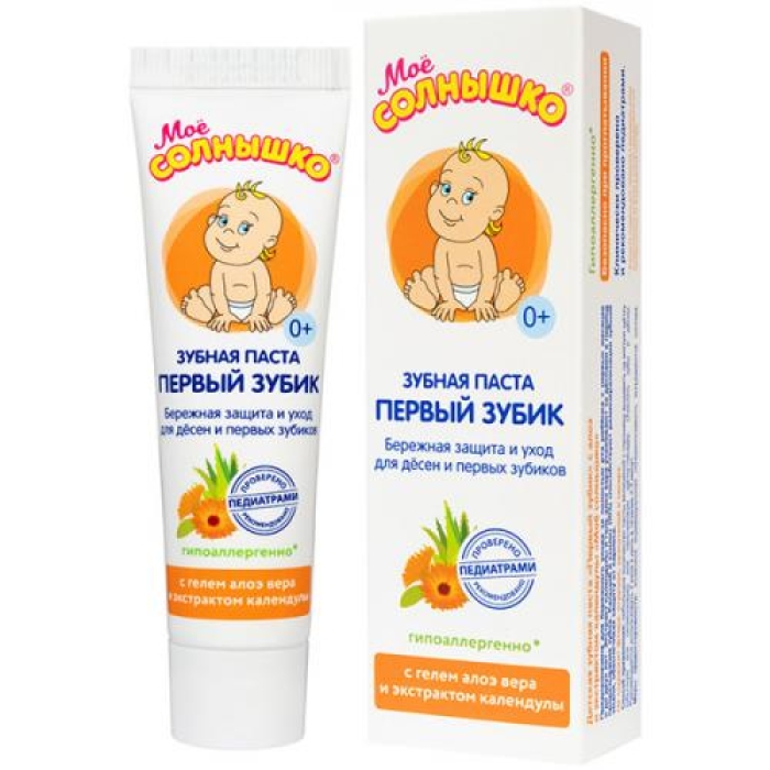 Зубная паста «Мое Солнышко. Первый зубик» представляет собой идеальное решение для заботы о первых зубках вашего малыша. Сформулированная с учетом особенностей детской гигиены, она обеспечивает бережный уход за деснами с самого рождения, способствуя минерализации и защите от кариеса 16-ти первых зубиков. В состав пасты входят экстракт календулы и гель алоэ вера, которые эффективно ухаживают за деснами в период прорезывания зубов, обеспечивая комфорт и защиту.