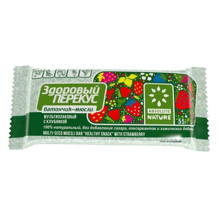 - Состав: овсяные хлопья, мед, клубника, орехи, семена