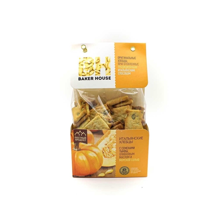 - Состав: цельнозерновая мука, семена тыквы, соль, растительное масло
