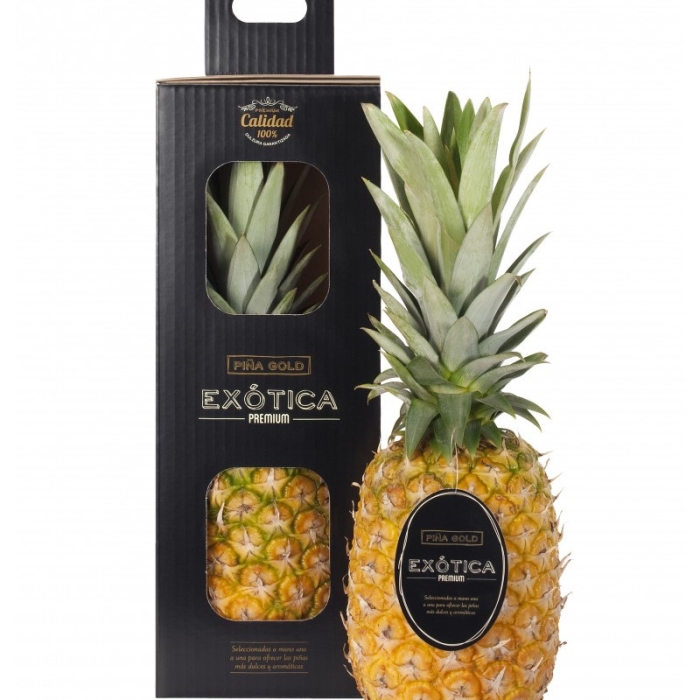 Ананас Пина Голд премиум экзотика обладает уникальными органолептическими свойствами. Его сладкий аромат ощущается даже через кожуру, а вкус — это гармония тропической сладости и легкой кислинки. Внешний вид плода впечатляет: яркая желтая кожура и высокая зеленая корона делают его идеальным для украшения праздничного стола или как оригинальный подарок. Этот ананас соответствует высоким стандартам качества, что подтверждается его премиум-категорией.Применение