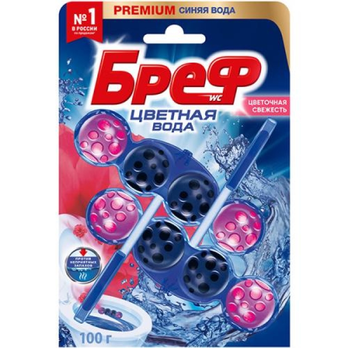 Туалетный блок «Бреф» Цветная вода Цветочная свежесть — это эффективное средство для поддержания чистоты и свежести вашего туалета. Он не только защищает от образования известкового налета, но и обладает антибактериальным действием, что обеспечивает гигиеническую чистоту. Уникальная формула борется с неприятными запахами, окрашивая воду в привлекательный синий цвет, что добавляет эстетики в ваш санузел.Особенности и преимущества