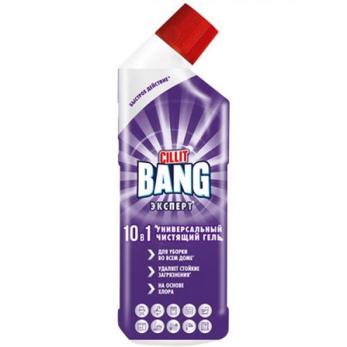Универсальный чистящий гель Cillit Bang 10 в 1 на основе хлора — это мощное средство, предназначенное для эффективной уборки в вашем доме. Он способен справляться с самыми стойкими загрязнениями, включая жир, остатки пищи, известковый налет, ржавчину и плесень. Благодаря своей формуле, гель подходит для использования на различных поверхностях, таких как плитка, кафель, фаянс, фарфор, пластик, ламинат и линолеум. Он не повреждает поверхности и не оставляет разводов, что делает его идеальным для чистки эмалированных приборов.