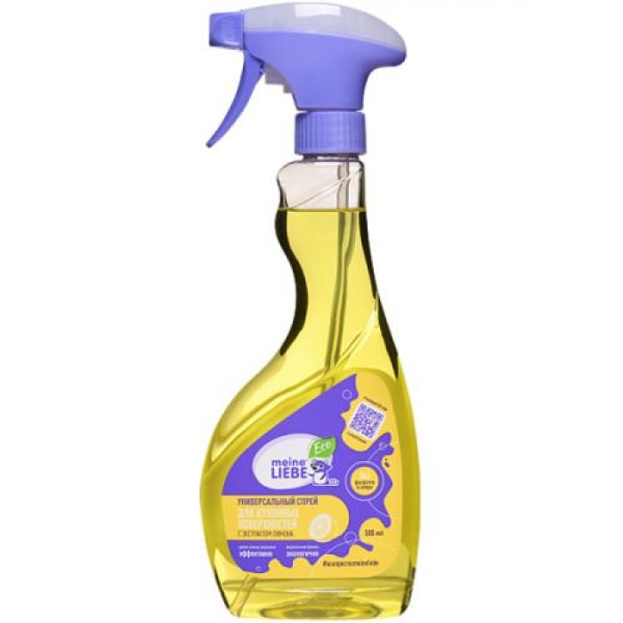 Универсальный концентрированный спрей Meine Liebe предназначен для ежедневной уборки различных кухонных поверхностей, включая раковины, столешницы, плиты, холодильники и микроволновые печи. Он эффективно справляется с загрязнениями, такими как жир, известковый налет и пятна от пищи, а также устраняет неприятные запахи. Благодаря экономичному расходу и свежему лимонному аромату, этот спрей станет незаменимым помощником в вашем доме. Состав спрея дополнен натуральным экстрактом алоэ вера, который обеспечивает дополнительную мягкость и бережное отношение к очищаемым поверхностям. Сниженное содержание ПАВов делает продукт более безопасным для использования в быту.Особенности и преимущества