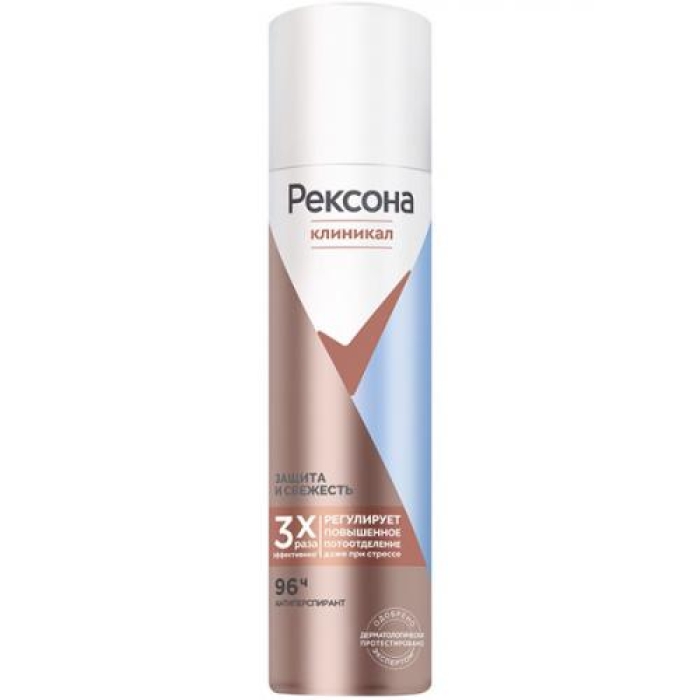 Антиперспирант-аэрозоль Рексона Клиникал Защита и свежесть обеспечивает надежную защиту от пота и неприятного запаха на протяжении 96 часов. Этот продукт специально разработан для регулирования повышенного потоотделения, даже в стрессовых ситуациях. Его нежная текстура создает бархатистое ощущение на коже, а мгновенное высыхание позволяет избежать следов на одежде. Аромат антиперспиранта сочетает в себе чистые освежающие ноты с мягким мускусным аккордом. Цветочный букет из розы и жасмина гармонично дополняется нежными фруктовыми оттенками бергамота и мяты, создавая уникальное ощущение свежести.Особенности и преимущества