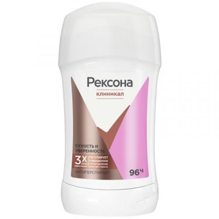 Антиперспирант-карандаш «Клиникал Сухость и уверенность» от Rexona обеспечивает надежную защиту от пота и неприятного запаха на протяжении 96 часов, что в три раза превышает эффективность стандартных дезодорантов. Формула продукта быстро и равномерно наносится на кожу, не оставляя липкой пленки и следов на одежде. Ароматическая композиция сочетает в себе бодрящие ноты свежих фруктов и сочного яблока, в сердце которой находятся успокаивающие аккорды жасмина и розы. Завершают аромат теплые древесные и мускусные ноты, создавая гармоничное и приятное послевкусие.Особенности и преимущества