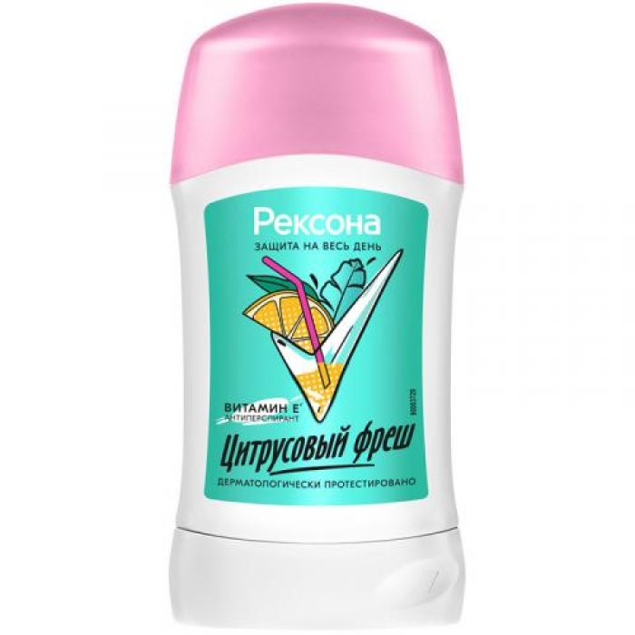 Антиперспирант-карандаш Рексона «Цитрусовый фреш» обеспечивает надежную защиту от пота и неприятного запаха на протяжении 48 часов. Его бодрящий цитрусовый аромат наполняет энергией и свежестью, что делает его идеальным выбором для активных людей. Продукт прошел дерматологические испытания и подходит для молодой кожи, начиная с 14 лет. В состав антиперспиранта входит витамин Е, который помогает ухаживать за кожей подмышек, обеспечивая ей дополнительную защиту и увлажнение.Особенности и преимущества
