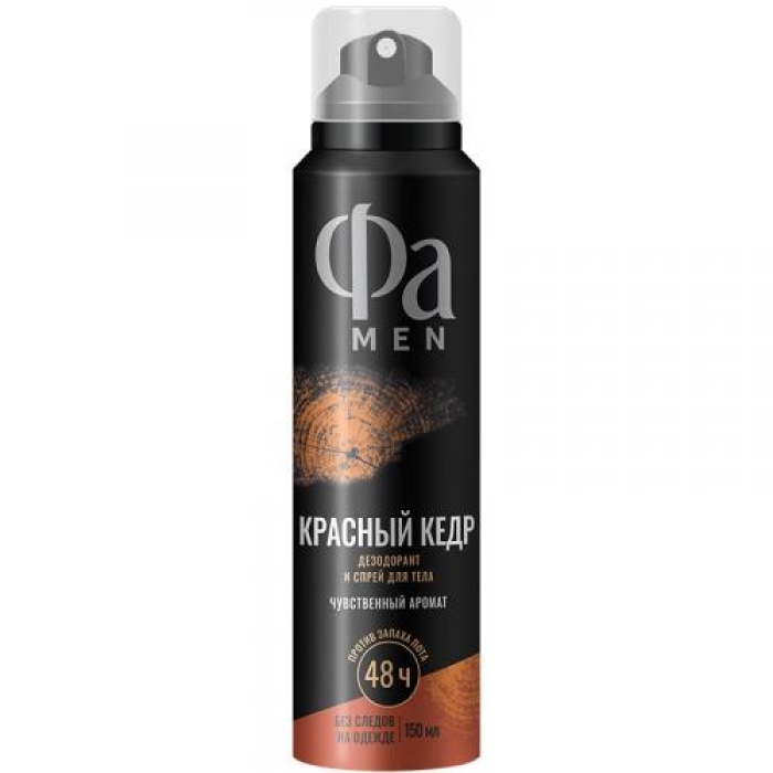 Дезодорант и спрей для тела Фа Men «Красный кедр» предлагает уникальное сочетание мощного и стойкого аромата, который основан на насыщенных древесных нотах красного кедра и аккорде винтажного виски. Этот продукт обеспечивает надежную защиту от пота и неприятного запаха на протяжении 48 часов, что делает его идеальным выбором для активных мужчин. Дерматологически протестирован, он подходит для чувствительной кожи и не вызывает раздражений. Формула не содержит ингредиентов животного происхождения и является веганской, что подчеркивает заботу о животных и окружающей среде.Особенности и преимущества