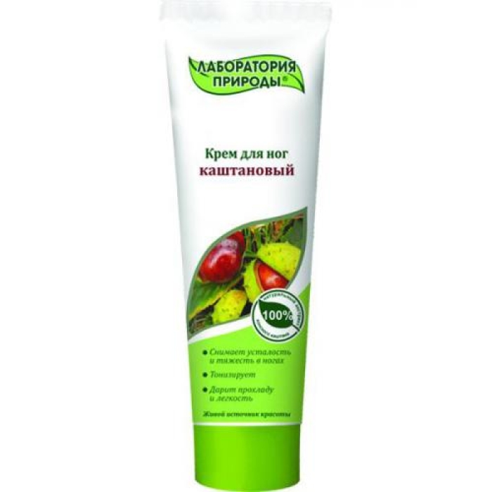 Крем для ног Лаборатория природы Каштановый интенсивно смягчает, питает и восстанавливает кожу ног, предотвращая образование трещин и сухости. Формула крема обогащена 100% натуральным экстрактом конского каштана, который добывается из плодов деревьев, произрастающих в Черноморье. Конский каштан известен своими свойствами, которые помогают устранить тяжесть в ногах, снимают усталость и напряжение, даря ощущение легкости и комфорта.Особенности и преимущества