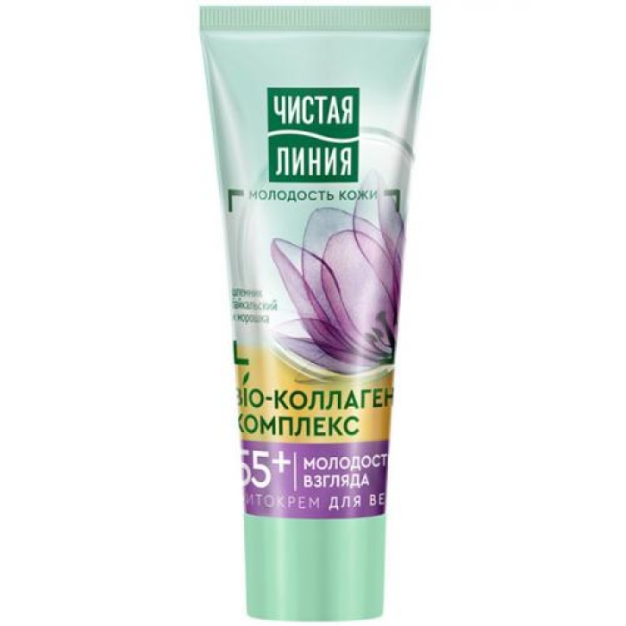 Фитокрем для век Чистая линия 55+ Молодость взгляда с маслом морошки и вытяжкой из байкальского шлемника — это высокоэффективное средство, разработанное для ухода за нежной кожей вокруг глаз. Формула крема направлена на уменьшение темных кругов, разглаживание кожи и повышение ее эластичности. В состав входит комплекс био-коллагена, который активно борется с признаками старения, наполняя и выравнивая кожу, а также сокращая количество и глубину мимических морщин.