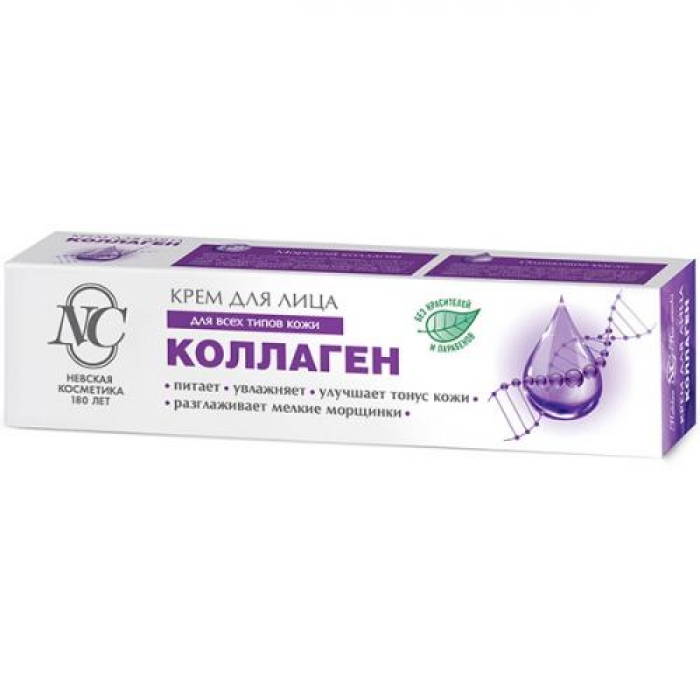 Крем «Невская косметика» с коллагеном предназначен для ежедневного ухода за кожей лица. Он активно питает, смягчает и увлажняет, улучшая тонус кожи и повышая её эластичность. Формула крема включает оливковое масло, известное своими смягчающими и питательными свойствами, которое эффективно восстанавливает гидролипидный барьер кожи. Морской коллаген создает на поверхности эпидермиса биопленку, способствующую эффекту натяжения, благодаря чему морщины становятся менее заметными. Коллаген также помогает удерживать влагу, смягчает и защищает кожу, улучшая её эластичность и тонус, а также ускоряет процессы восстановления тканей.Особенности и преимущества
