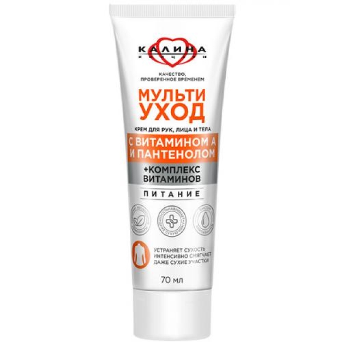 Крем для рук, лица и тела от Концерна Калина — это многофункциональный продукт, который обеспечивает интенсивное увлажнение и восстановление кожи. Формула крема обогащена витамином А и пантенолом, что способствует смягчению и регенерации сухих участков кожи. Легкая текстура крема быстро впитывается, не оставляя жирной пленки, что делает его идеальным для ежедневного использования. Приятный аромат добавляет ощущение свежести и комфорта.Особенности и преимущества