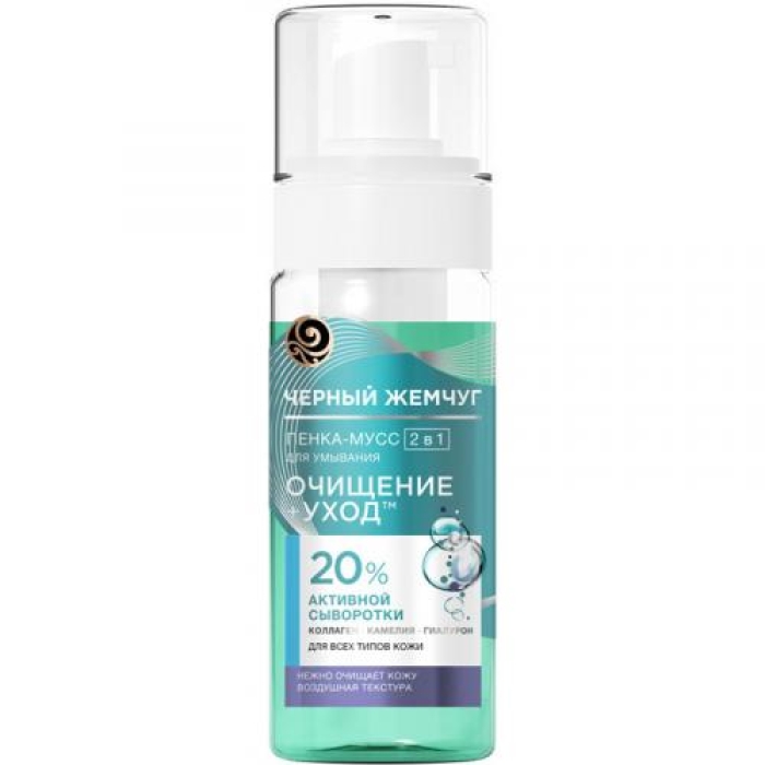 Пенка-мусс для умывания «Черный Жемчуг» 2 в 1 обеспечивает бережное очищение кожи лица, не вызывая ощущения стянутости. Нежная, легкая текстура средства плавно распределяется по коже, обеспечивая комфортное использование. Состав включает 20% увлажняющей сыворотки с коллагеном, что способствует повышению упругости кожи уже на этапе очищения. Действие коллагена продолжается даже после смывания, поддерживая эластичность и тонус кожи. Масло семян камелии, входящее в формулу, обладает мощным антиоксидантным эффектом, защищая кожу от негативного воздействия окружающей среды. Гиалуроновая кислота эффективно удерживает влагу, даря ощущение свежести и увлажненности.Особенности и преимущества