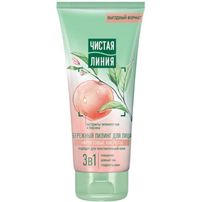Мягкий пилинг с фруктовыми кислотами «Чистая линия» предназначен для бережного очищения и выравнивания тона кожи лица. Формула продукта обогащена экстрактами зеленого чая и персика, которые увлажняют и смягчают кожу, придавая ей восхитительную гладкость. Пилинг обеспечивает деликатное очищение, что делает его идеальным выбором для чувствительной кожи. Продукт прошел дерматологическое тестирование и получил одобрение специалистов.