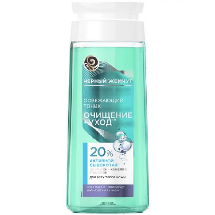 Тоник «Очищение + Уход» от бренда «Черный жемчуг» представляет собой идеальное средство для ежедневного ухода за кожей лица. Он эффективно освежает, тонизирует и матирует кожу на протяжении 24 часов, обеспечивая ощущение комфорта без стягивания. Формула тоника обогащена 20% активной сыворотки, что способствует глубокому увлажнению и питанию кожи. Гиалуроновая кислота и коллаген помогают поддерживать упругость и эластичность, а масло цубаки (камелия японская) обладает мощными антиоксидантными свойствами, защищая кожу от негативного воздействия окружающей среды.Особенности и преимущества