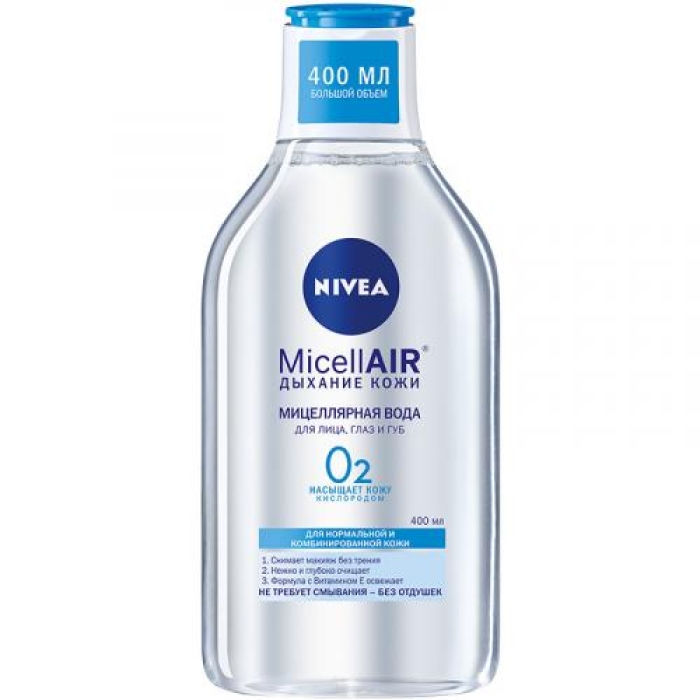 Мицеллярная вода Nivea MicellAir Дыхание кожи предназначена для бережного удаления макияжа с лица, глаз и губ. Благодаря уникальной формуле, мицеллы действуют как магнит, эффективно захватывая частицы макияжа, загрязнения и излишки себума, не вызывая раздражения кожи. Активные компоненты, входящие в состав, насыщают кожу кислородом, что способствует её здоровому виду и улучшает общее состояние.