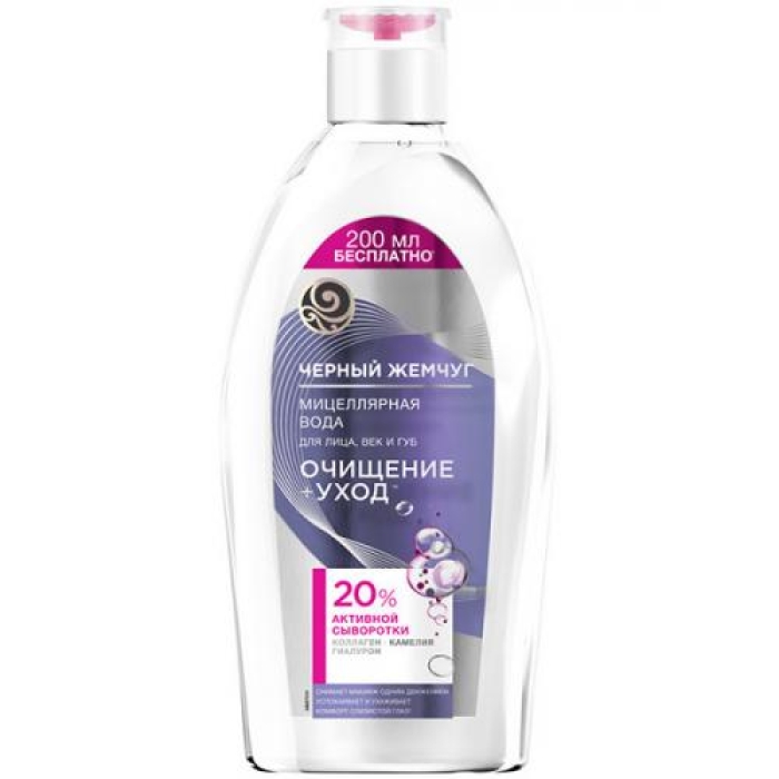 Мицеллярная вода от бренда «Черный Жемчуг» обеспечивает глубокое очищение кожи лица, век и губ, эффективно удаляя макияж без остатка и неприятной пленки. Формула средства включает 20% активной сыворотки, что способствует увлажнению и восстановлению кожи. Нежная текстура мицеллярной воды дарит комфорт при использовании, а продуманный дизайн флакона позволяет экономно дозировать продукт.Особенности и преимущества