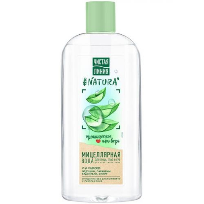 Мицеллярная вода Чистая линия Natura предназначена для бережного снятия макияжа и очищения кожи лица, глаз и губ. Она эффективно удаляет загрязнения, не вызывая дискомфорта и раздражения. Формула продукта не содержит отдушек, парабенов, красителей и спирта, что делает его идеальным для чувствительной кожи.