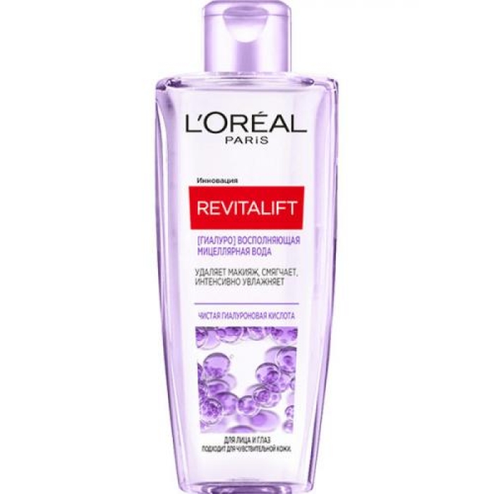 Мицеллярная вода Revitalift от L'Oreal Paris с чистой гиалуроновой кислотой — это идеальное средство для ежедневного очищения кожи лица и области вокруг глаз. Она эффективно удаляет макияж и загрязнения, оставляя кожу свежей, чистой и увлажненной. Благодаря своей формуле, мицеллярная вода подходит для всех типов кожи, включая чувствительную, и не требует смывания, что делает её удобной в использовании.