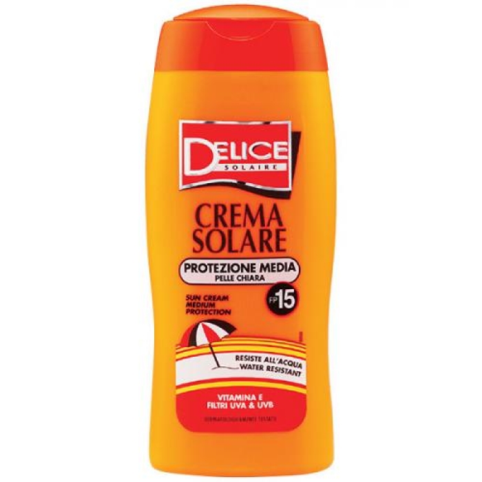 Солнцезащитный крем Delice Solaire SPF 15 — это надежный защитник вашей кожи от вредного воздействия ультрафиолетовых лучей. Этот продукт, прошедший дерматологические испытания, обеспечивает не только защиту, но и способствует получению красивого бронзового загара. Водостойкая формула позволяет использовать крем даже во время купания, что делает его идеальным выбором для активного отдыха на солнце. Содержит витамин Е, который известен своими антиоксидантными свойствами и помогает поддерживать здоровье кожи.Особенности и преимущества