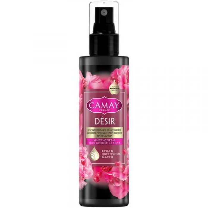 Парфюмированный спрей Camay Desir Пион и красные ягоды — это изысканный продукт, который сочетает в себе эфирные масла лаванды, иланг-иланга и душицы. Его стойкий аромат пиона и красных ягод сохраняется на коже до 12 часов, обеспечивая длительное ощущение свежести и комфорта. Вдохновение для этого аромата черпалось из знаменитого парфюма Baccarat Rouge 540, что подчеркивает его уникальность и привлекательность.