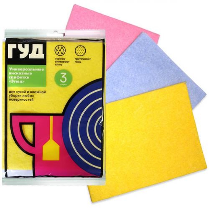 Универсальная салфетка из вискозы «Гуд Этюд» представляет собой идеальное решение для эффективной влажной и сухой уборки. Благодаря высокому качеству материала, салфетка быстро впитывает любые жидкости, что делает ее незаменимым помощником в быту. Она не оставляет пятен на различных поверхностях, что обеспечивает безупречный результат уборки. Салфетка также подходит для стирки, что позволяет многократно использовать ее без потери качества.Особенности и преимущества