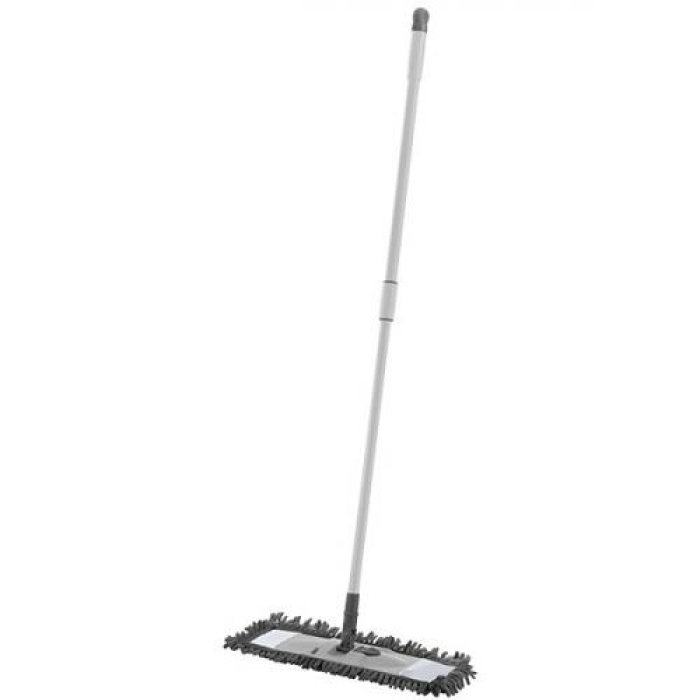 - Удобный телескопический черенок позволяет регулировать длину в зависимости от высоты и типа уборки.