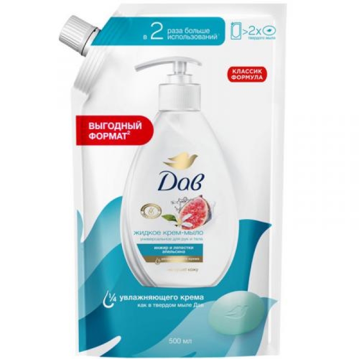 Крем-мыло жидкое «Дав» с ароматом инжира и лепестков апельсина — это идеальное средство для бережного очищения кожи рук и тела. Состав на 1/4 состоит из увлажняющего крема, что обеспечивает длительное питание и увлажнение, сохраняя кожу мягкой и гладкой. Формула, состоящая на 96% из биоразлагаемых компонентов, заботится о природе, а нейтральный уровень pH делает продукт безопасным для всех типов кожи.Особенности и преимущества