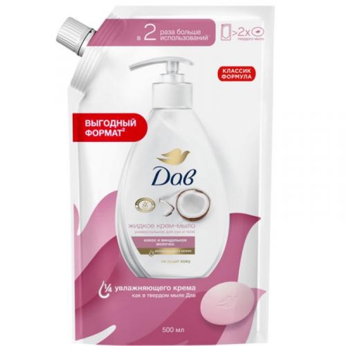Крем-мыло жидкое Дав с кокосом и миндальным молочком — это идеальное средство для бережного очищения кожи рук и тела. Состав на 1/4 состоит из увлажняющего крема, что обеспечивает длительное питание и защиту кожи. Формула, состоящая на 96% из биоразлагаемых компонентов, не только эффективно очищает, но и заботится о здоровье вашей кожи в течение 24 часов.