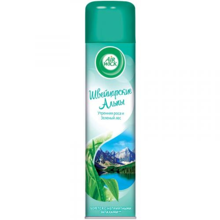 Освежитель воздуха Air Wick Швейцарские Альпы Утренняя роса и зеленый лес — это идеальное решение для создания уютной и свежей атмосферы в вашем доме. Этот продукт эффективно борется с неприятными запахами, наполняя помещение легким и приятным ароматом, который напоминает утреннюю свежесть альпийских лесов. Перед использованием рекомендуется тщательно встряхнуть баллон для равномерного распределения аромата.