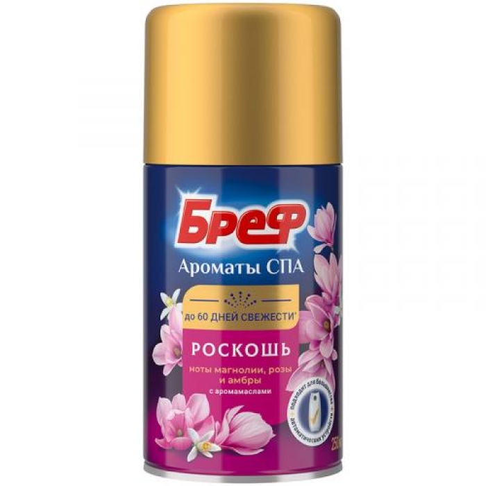 Освежитель воздуха «Бреф Ароматы СПА Роскошь» с уникальной технологией сухого распыления создает атмосферу уюта и комфорта в вашем доме. Этот продукт наполняет пространство изысканным ароматом, не оставляя капель влаги, что делает его идеальным для использования в любых помещениях — от кухни и ванной до гостиной и спальни. Содержит натуральные аромамасла, которые не только освежают воздух, но и борются с неприятными запахами, обеспечивая до 60 дней свежести.Особенности и преимущества