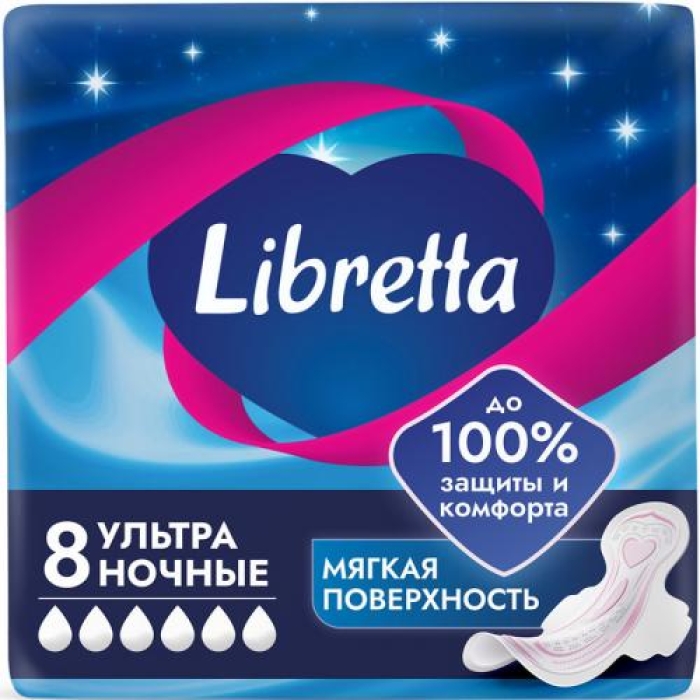 Женские гигиенические прокладки «Libretta Ультра Ночные» с мягкой поверхностью и анатомической формой обеспечивают надежную защиту и комфорт во время сна. Эти прокладки разработаны с учетом потребностей женщин, чтобы обеспечить ощущение гармонии и уверенности в течение ночи. Они быстро поглощают влагу и удерживают ее, что создает чувство сухости и комфорта на протяжении всей ночи.