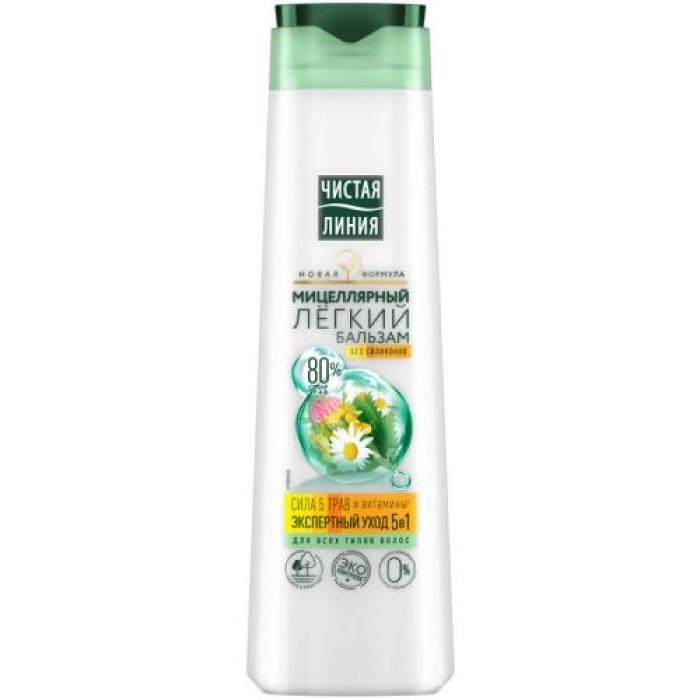 Мицеллярный бальзам легкого ухода от Чистой Линии предназначен для бережного и невесомого ухода за волосами. Его уникальная мицеллярная основа эффективно смягчает волосы, облегчая процесс расчесывания и придавая им ухоженный вид. Состав бальзама включает 80% отвара трав, который насыщает волосы необходимыми питательными веществами, а фитовитамины обеспечивают блеск и мягкость, не утяжеляя их.