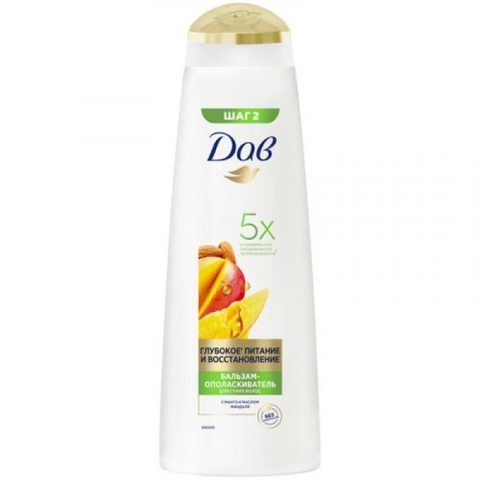 Бальзам-ополаскиватель «Дав Глубокое питание и восстановление» с экстрактом манго и маслами миндаля, кокоса и авокадо создан для интенсивного питания и восстановления даже самых сухих и поврежденных волос. Формула, обогащенная глицерином, обеспечивает глубокое увлажнение, не утяжеляя волосы, что делает их мягкими, блестящими и послушными. Продукт не содержит силиконов и красителей, что делает его безопасным для ежедневного использования.