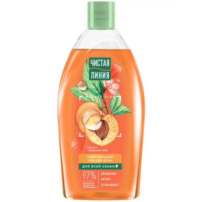 Смягчающий гель для душа «Чистая Линия» представляет собой уникальный продукт, который на 97% состоит из компонентов натурального происхождения. Он бережно очищает кожу, не нарушая ее естественный баланс. В состав геля входят сок персика, миндальное масло, экстракты вербены и плодов шиповника, а также листья шалфея и масло льна, которые питают и ухаживают за кожей во время мытья. Формула геля не содержит мыла, что позволяет избежать пересушивания кожи, а его 99% биоразлагаемая формула делает его экологически безопасным выбором.