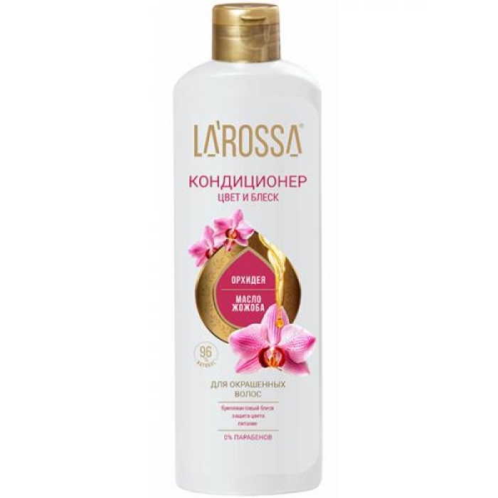 Кондиционер Larossa с экстрактом орхидеи и маслом жожоба предназначен для ухода за окрашенными волосами. Он эффективно защищает цвет после окрашивания, предотвращая его вымывание и выцветание. Формула кондиционера обогащена натуральными компонентами, которые усиливают блеск и эластичность волос, делая их более живыми и здоровыми.Особенности и преимущества