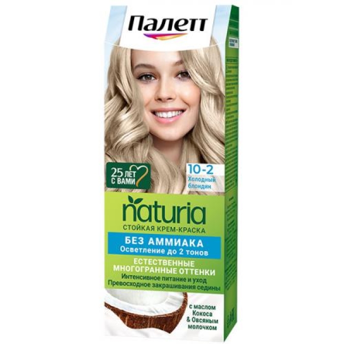 Крем-краска стойкая «Палетт Naturia» без аммиака, оттенок 10-2 Холодный блондин, представляет собой идеальное решение для тех, кто стремится к естественному и многогранному цвету волос. Формула краски обогащена мультитональными окрашивающими пигментами и активными компонентами, такими как масло какао, масло кокоса и экстракт ягод годжи, которые не только окрашивают, но и ухаживают за волосами. Уникальная формула позволяет полностью закрашивать седые волосы, придавая им здоровый и сияющий вид. Ухаживающий кондиционер с овсяным молочком проникает в структуру волос, обеспечивая глубокое питание и увлажнение. Краска обладает приятным фруктовым ароматом, что делает процесс окрашивания более комфортным. Легкость смешивания и отсутствие течения обеспечивают удобство в использовании.Особенности и преимущества