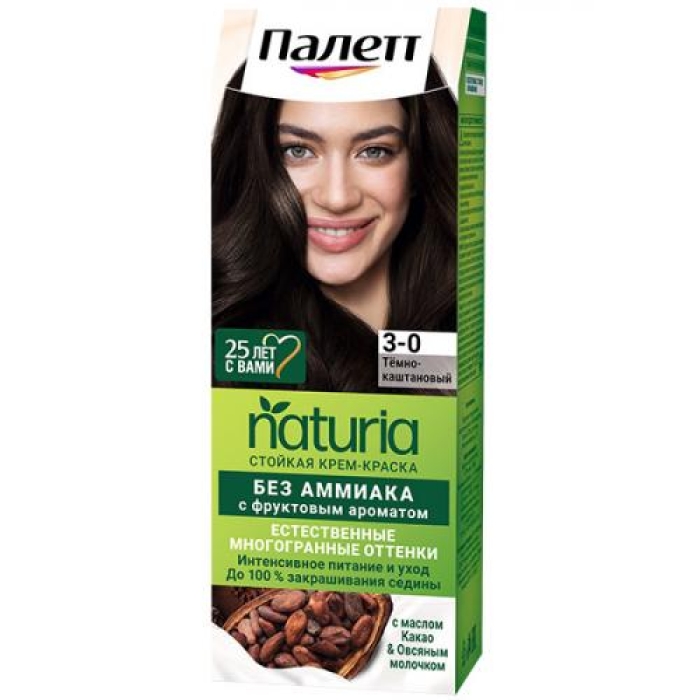 Крем-краска стойкая без аммиака «Палетт Naturia» предлагает уникальное решение для тех, кто стремится к естественному и многогранному цвету волос. Благодаря мультитональным окрашивающим пигментам, краска обеспечивает полное закрашивание седых волос, придавая им насыщенный темно-каштановый оттенок. В состав входят активные компоненты, такие как масло какао, масло кокоса и экстракт ягод годжи, которые не только окрашивают, но и питают волосы, придавая им здоровый вид.Особенности и преимущества