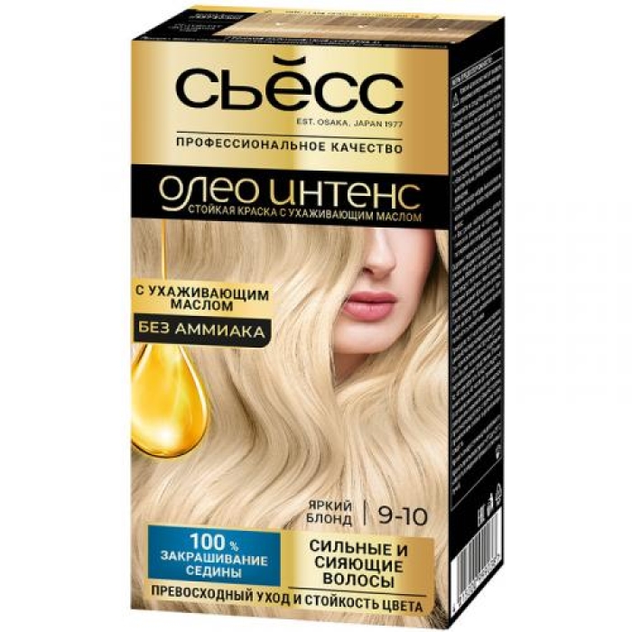 Крем-краска «Сьесс Олео Интенс» в оттенке 9-10 Яркий блонд предлагает идеальное решение для тех, кто стремится к стойкому и насыщенному цвету волос. Благодаря формуле без аммиака, она обеспечивает до 100% закрашивания седины, не повреждая структуру волос. Уникальные ухаживающие масла, входящие в состав, глубоко питают волосы, придавая им здоровый блеск и силу. Результат — яркий, стойкий цвет и сияющие волосы, которые радуют глаз.Особенности и преимущества