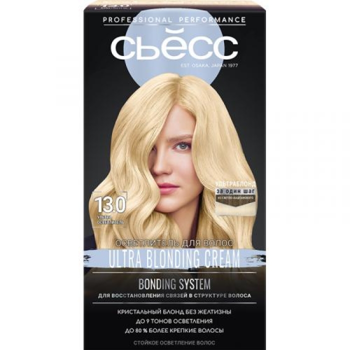 Стойкий осветлитель «Сьесс» представляет собой высококачественный продукт, разработанный для достижения глубоких и многогранных оттенков волос. Он содержит интенсивные осветляющие компоненты, которые обеспечивают до 9 тонов осветления, а также до 10 недель эффективной нейтрализации желтизны. Важным элементом формулы является Bonding system, которая восстанавливает связи в структуре волоса, что способствует их укреплению и улучшению общего состояния.