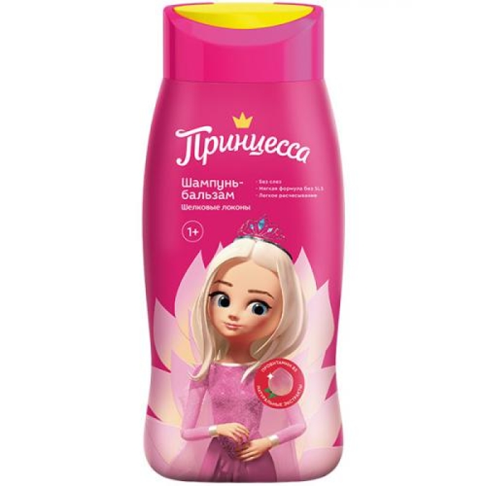 Шампунь-бальзам 'Принцесса Шелковые локоны' предназначен для увлажнения и восстановления волос, придавая им блеск и облегчая расчесывание. Этот продукт идеально подходит для ежедневного использования и обладает нежным ароматом розового персика, который подчеркивает образ юной и очаровательной Принцессы. Формула шампуня включает природный кондиционер на основе гуаровой смолы, витамин В5 и экстракты лесных ягод, что делает его не только эффективным, но и безопасным для чувствительных глаз. Продукт не вызывает слез и аллергических реакций, а также не содержит парабенов, синтетических масел, силиконов и агрессивных SLS.Особенности и преимущества