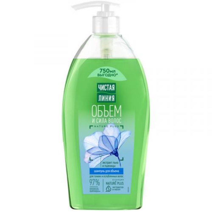 Шампунь «Чистая линия» Объем и сила предназначен для тонких и ослабленных волос, обеспечивая бережное очищение и восстановление. Формула шампуня содержит 97% компонентов натурального происхождения, что делает его безопасным для ежедневного использования. Экстракты льна и пшеницы, входящие в состав, питают волосы, придавая им объем у корней и по всей длине, не утяжеляя пряди. Продукт не содержит силиконов, что позволяет сохранить естественную структуру волос.Особенности и преимущества