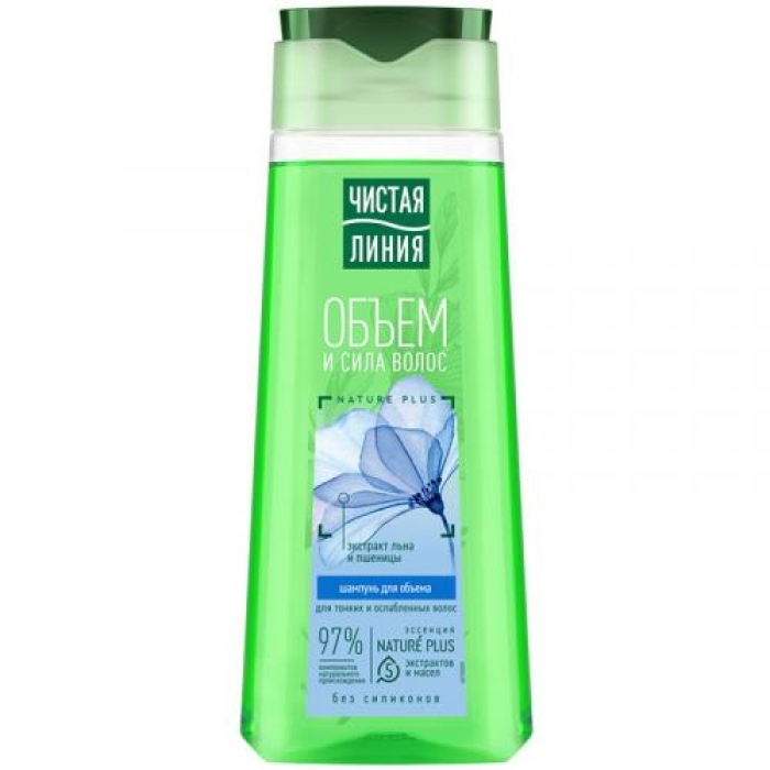 Шампунь «Чистая линия» Объем и сила для тонких и ослабленных волос создан на основе 97% натуральных компонентов. В его формуле присутствует уникальная эссенция Nature Plus, состоящая из пяти экстрактов и масел, включая экстракты вербены, шалфея, шиповника, а также масла миндаля и льна. Эти активные ингредиенты не только предотвращают выпадение волос, но и питают их, защищая от повреждений.Особенности и преимущества