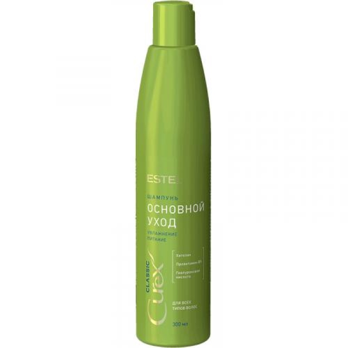 Шампунь Estel Curex Classic Основной уход предназначен для мягкого очищения и увлажнения всех типов волос. Формула продукта обогащена хитозаном, пантенолом и гиалуроновой кислотой, что обеспечивает комплексный уход за волосами, придавая им здоровье и блеск. Хитозан помогает удерживать влагу, пантенол способствует восстановлению структуры волос, а гиалуроновая кислота обеспечивает глубокое увлажнение.Особенности и преимущества