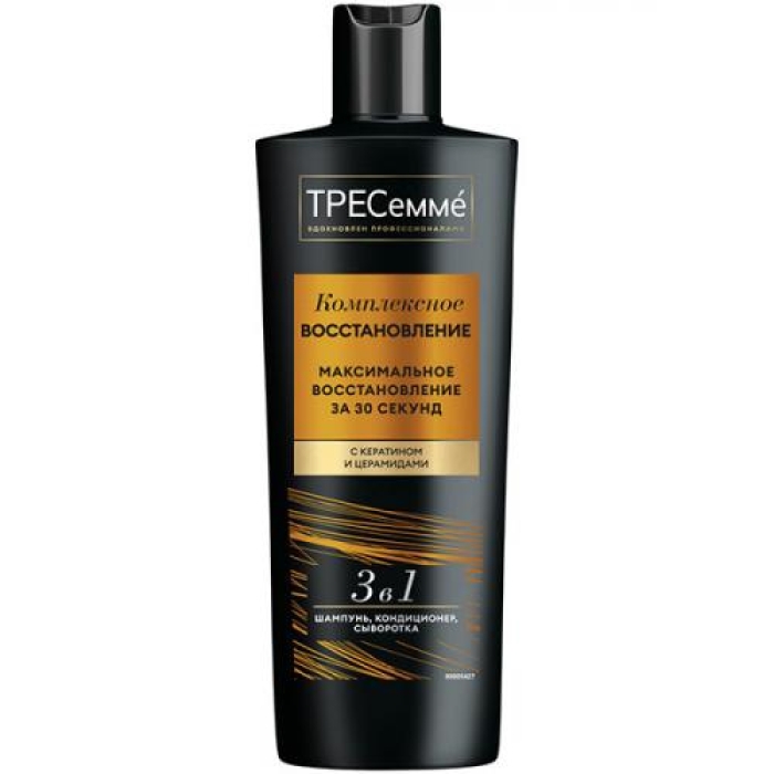 Шампунь Тресемме Комплексное восстановление 3 в 1 — это уникальный продукт, который объединяет в себе функции шампуня, кондиционера и сыворотки. Он разработан для быстрого и эффективного восстановления поврежденных волос всего за 30 секунд. Благодаря своей формуле, шампунь обеспечивает видимый результат уже после первого применения, очищая волосы и кожу головы от избыточного себума и загрязнений.