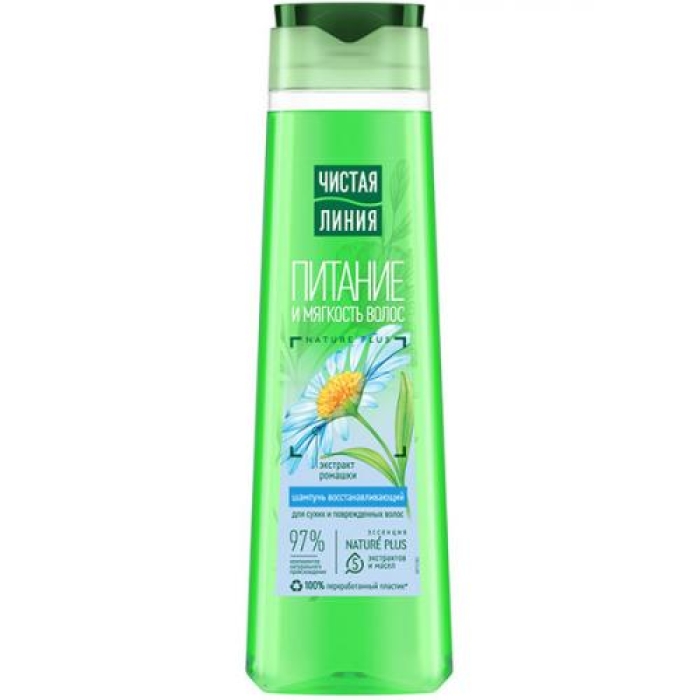 Восстанавливающий шампунь 'Чистая линия' с питанием и мягкостью специально разработан для ухода за сухими и поврежденными волосами. Состав шампуня на 97% состоит из ингредиентов натурального происхождения, что делает его безопасным и эффективным для ежедневного использования. Эссенция Nature Plus, содержащая экстракты вербены, шалфея и шиповника, а также масла миндаля и льна, активно питает волосы, предотвращает их выпадение и защищает от повреждений. Шампунь бережно очищает кожу головы, не нарушая ее естественный баланс. Экстракт ромашки придает волосам естественный блеск и ухоженный вид.Особенности и преимущества